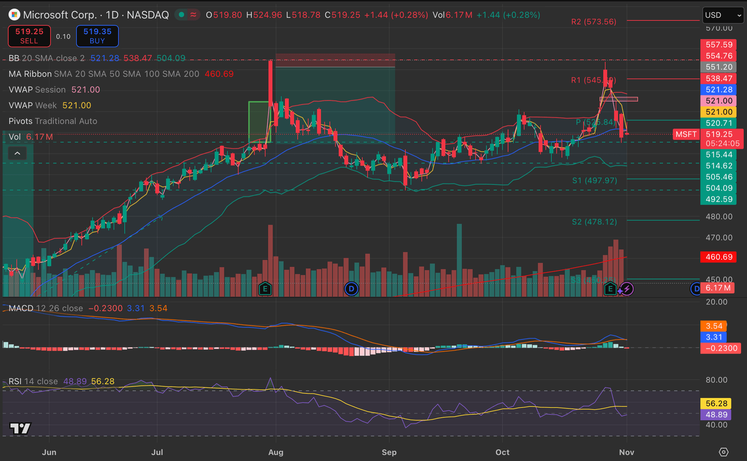 Microsoft to solidna spółka, która dobrze wygląda w każdym portfelu – ma mocne fundamenty i perspektywy wzrostu. Jednak biorę pod uwagę, że przy bardzo wysokich oczekiwaniach cena może chwilowo „odpocząć” lub lekko się skonsolidować. Warto obserwować, czy utrzyma poziomy wsparcia i nie dać się ponieść emocjom.