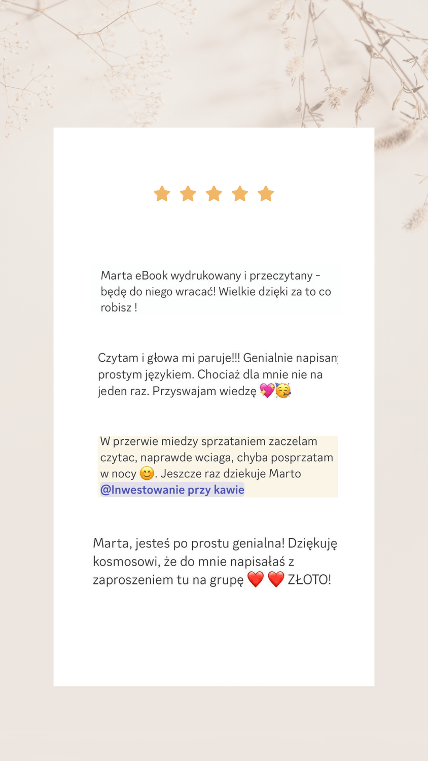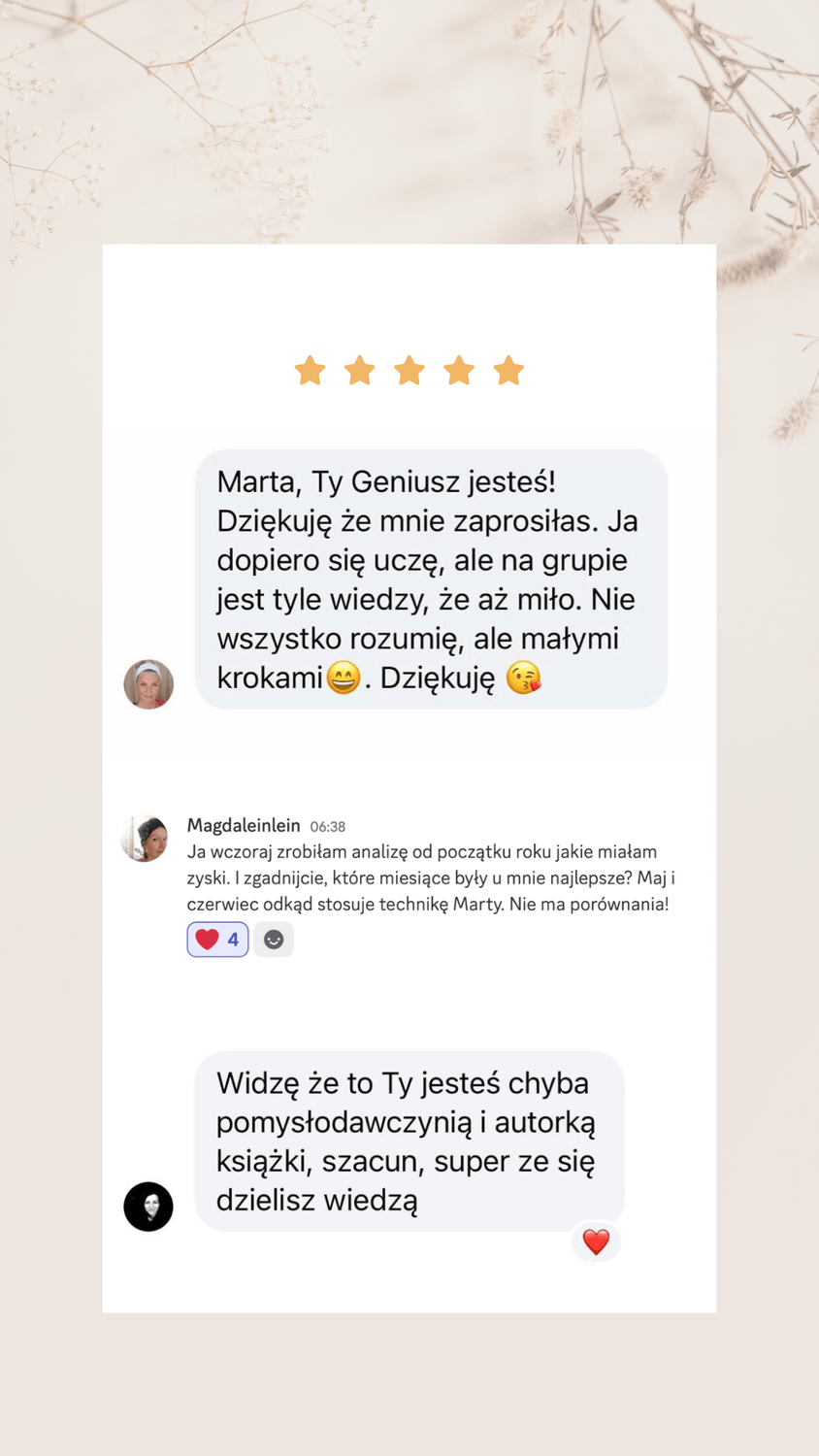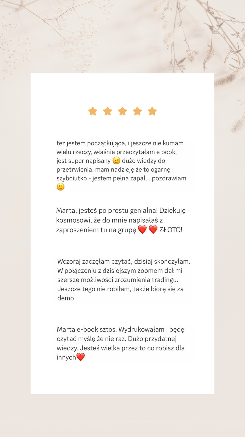 Tak. Materiał przygotowała osoba z doświadczeniem rynkowym, a opinie uczestniczek potwierdzają jego skuteczność. Nasz kurs inwestowania od podstaw stawia na transparentność i weryfikowalne rezultaty.