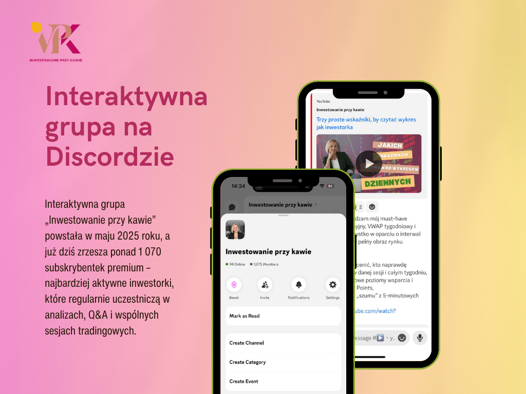W Inwestowanie Przy Kawie stworzyliśmy program „Zrozum Giełdę i Zacznij Działać”, w którym kurs inwestowania łączy lekcje wideo, ćwiczenia i krótkie checklisty, abyś mogła przełożyć wiedzę na codzienne wybory. Oprócz tego dzielimy się naszą wiedzą na cyklicznych webinarach i grupie na Discord.